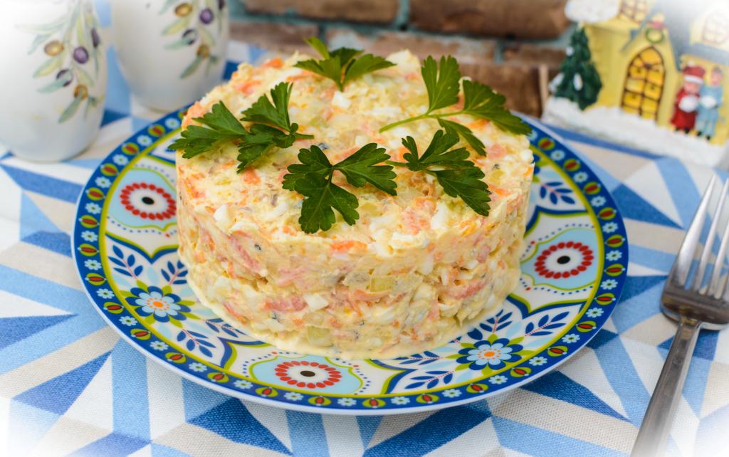 А затем достать тарелку с салатом из холодильника, аккуратно снять кольцо. Украсить по своему вкусу (я просто выложила сверху веточки петрушки) и подать к столу. Аппетитный, очень вкусный, достаточно сытный салат, приготовленный с варёным минтаем и морковью, отлично разнообразит ваше меню и в будни, и в праздники!