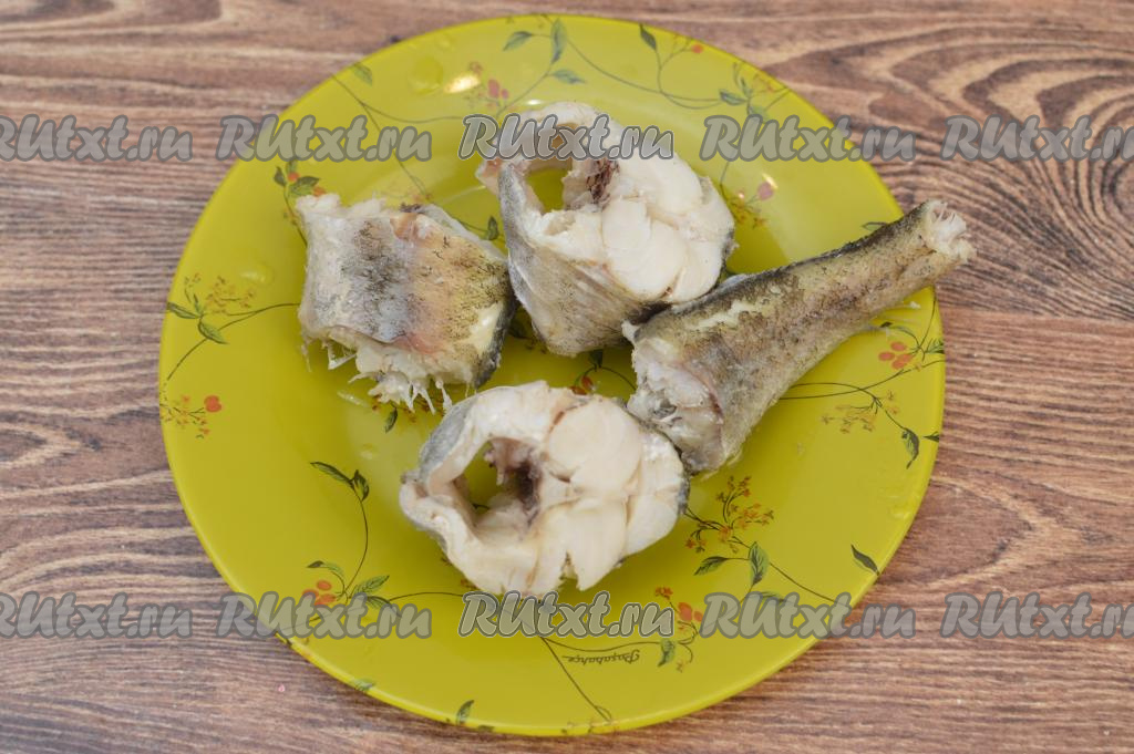 Кастрюлю с варёной рыбой убрать с огня, вынуть из рассола, выложить на тарелку, дать остыть.
