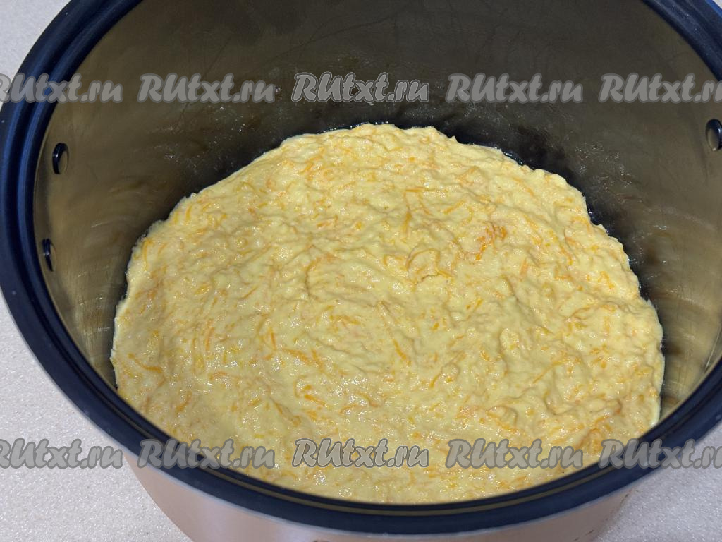 Чашу мультиварки смазать растительным маслом, выложить тесто, разровнять.
