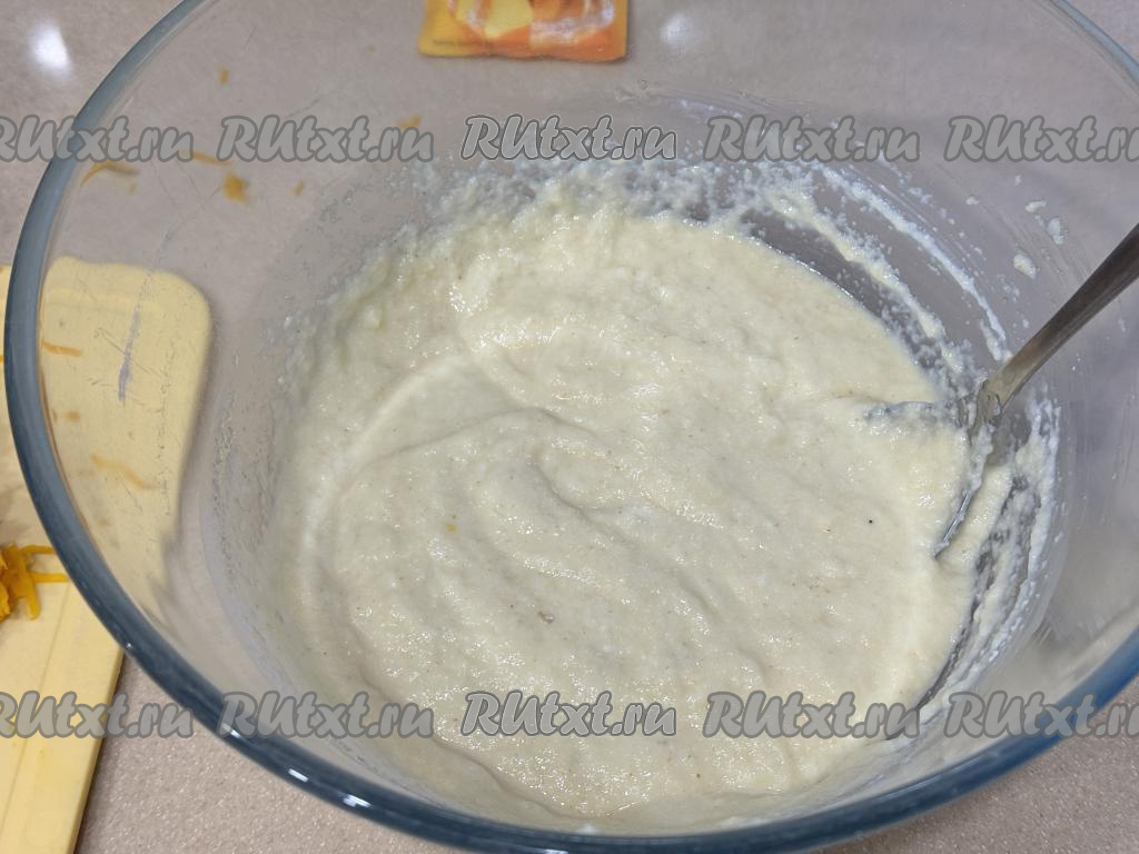 Частями добавляя оставшуюся муку и хорошо вмешивая её, замесить в меру густое тесто для манника, как на фото. В зависимости от сочности тыквы, жирности кефира и размера яйца, может потребоваться немного меньше или больше муки, чем указано в ингредиентах, поэтому ориентируйтесь именно на густоту теста для манника.