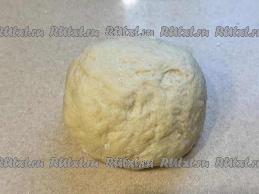 Добавляя частями муку и каждый раз полностью вмешивая её, учитывайте, что тесто должно получиться мягким, нежным, не липнущим к рукам. Завернуть тесто в пищевую плёнку, чтобы оно не заветривалось, и оставить на время, пока доваривается, а затем слегка остывает каша.