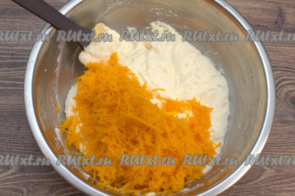 В творожную массу добавить натёртую тыкву, хорошо перемешать.