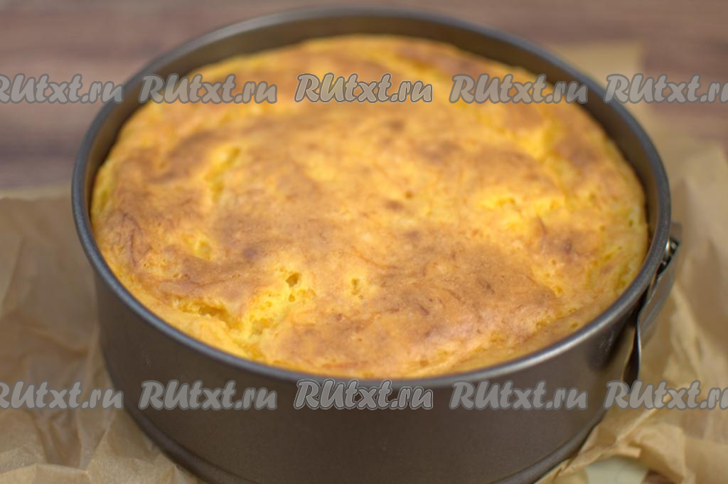 Выпекать творожную запеканку с тыквой в разогретой до 180 градусов духовке в течение 45-50 минут (до румяности). Запеканка во время выпечки хорошо поднимается, но как только достаёшь её из духовки, она опадает. Это нормально для творожных запеканок без манки.