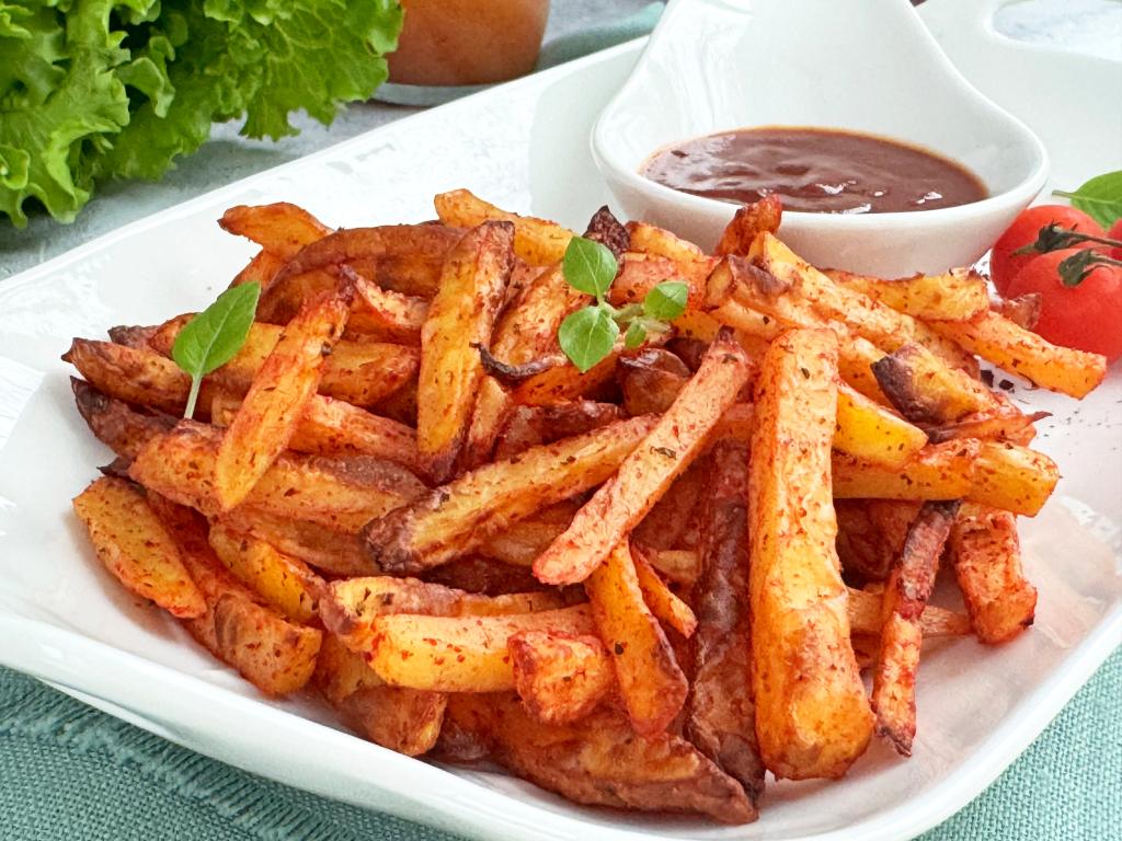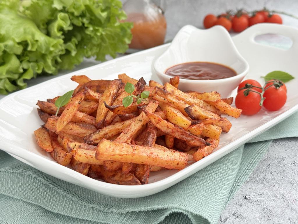 В аэрогриле можно приготовить картошку фри и из заранее замороженного, и из свежего картофеля. Замороженный картофель фри для запекания в домашних условиях чаще всего покупают в магазине. А я предлагаю достаточно бюджетный и простой рецепт приготовления в аэрогриле картошки фри из свежего картофеля. Картошка будет запекаться с минимальным количеством масла, поэтому она будет намного полезнее картофеля, жаренного во фритюре. Картошка получается покрытой аппетитной корочкой снаружи и при этом мягкой внутри. Чтобы сделать вкус и аромат картофеля более интересным, можно использовать различные специи для овощей, либо же сделать классический вариант исключительно с солью - тут решать вам. Я же добавила для аромата и для цвета в картошку фри молотую паприку, получилось очень вкусно и аппетитно.