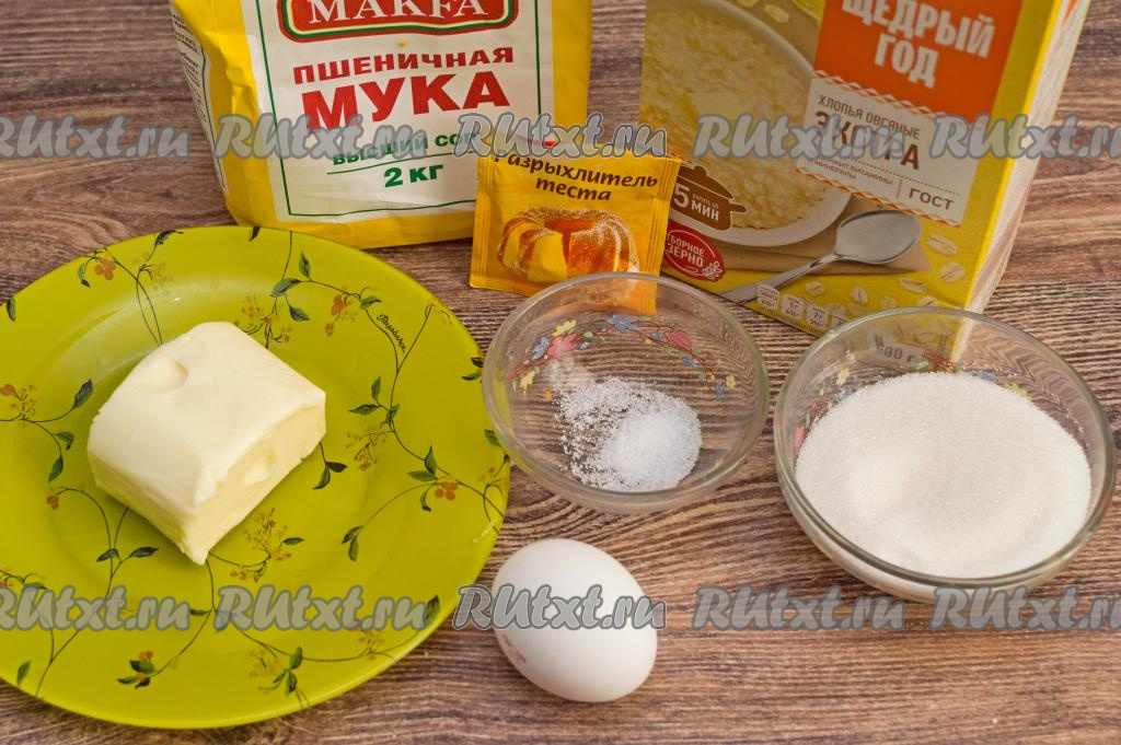 Подготовить продукты. Овсяные хлопья нужны быстрого приготовления (время варки на упаковке должно быть указано 5 минут). Сливочное масло берите от проверенного производителя, от его качества во многом зависит вкус овсяного печенья. Сливочное масло заранее достать из холодильника, чтобы оно успело согреться до комнатной температуры.