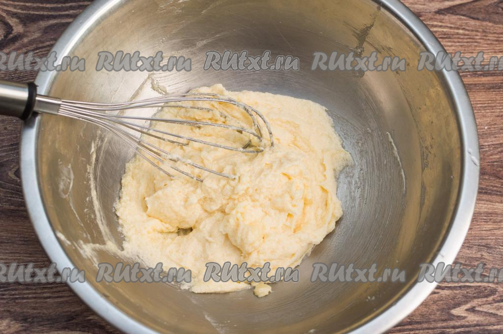 Венчиком взбить масло с яйцом до однородной массы (я обычно интенсивно взбиваю венчиком в течение 2-3 минут, сахар должен раствориться).