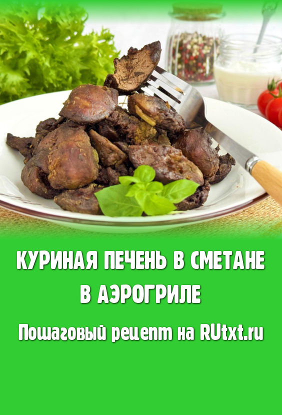 Мягкую, нежную куриную печень, запечённую в сметане, разложить из чаши аэрогриля по тарелкам и в горячем виде, дополнив гарниром, подать к столу.