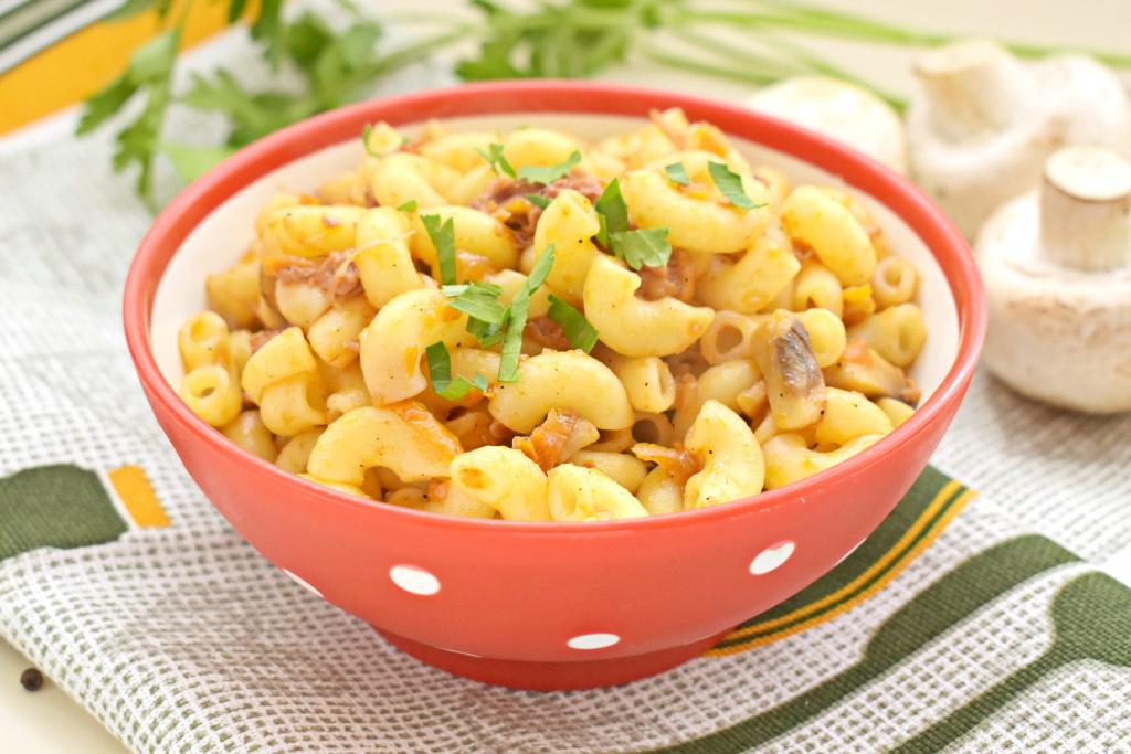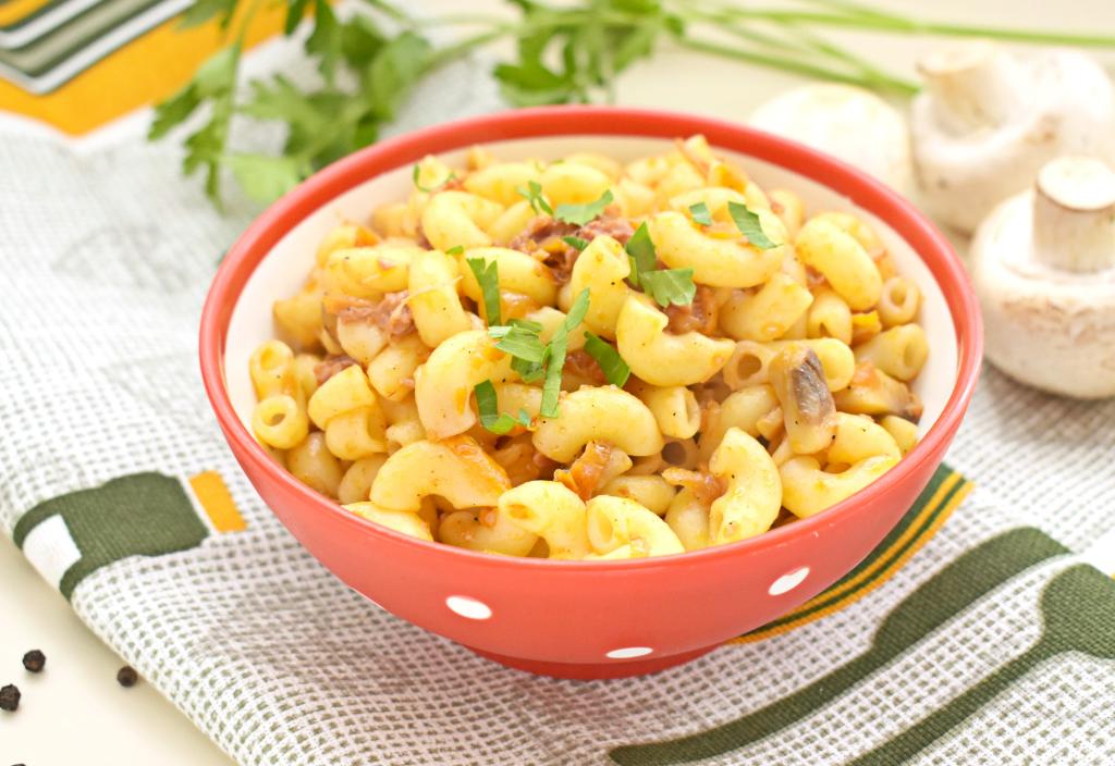 Макароны готовятся и просто, и быстро, поэтому их достаточно часто подают в качестве гарнира к мясу, птице. В этот раз предлагаю подать на обед или ужин макароны с тушёнкой и грибами. Блюдо получается насыщенным, сытным, аппетитным. Этот рецепт из разряда "два в одном", ведь вы сразу сможете подать к столу и гарнир, и мясо с грибами. Готовится блюдо просто, а получается вкусным, попробуйте!