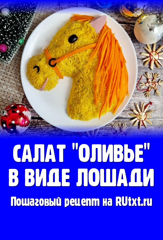 Многие из нас традиционно к новогоднему столу готовят "Оливье". По восточному календарю 2026 год будет годом "Лошади". Поэтому предлагаю приготовить салат "Оливье" и оформить его в виде головы лошадки. Формируется этот салат и просто, и быстро, а выглядит очень симпатично. Поверьте, такой новогодний салат станет достойным украшением вашего праздничного стола и точно понравится и вашим близким, и гостям!