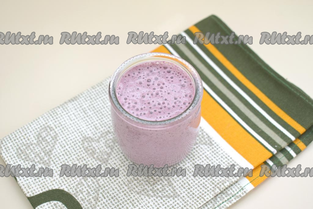 Готовый смузи из голубики и банана сразу переливаем в стакан и подаём к столу.