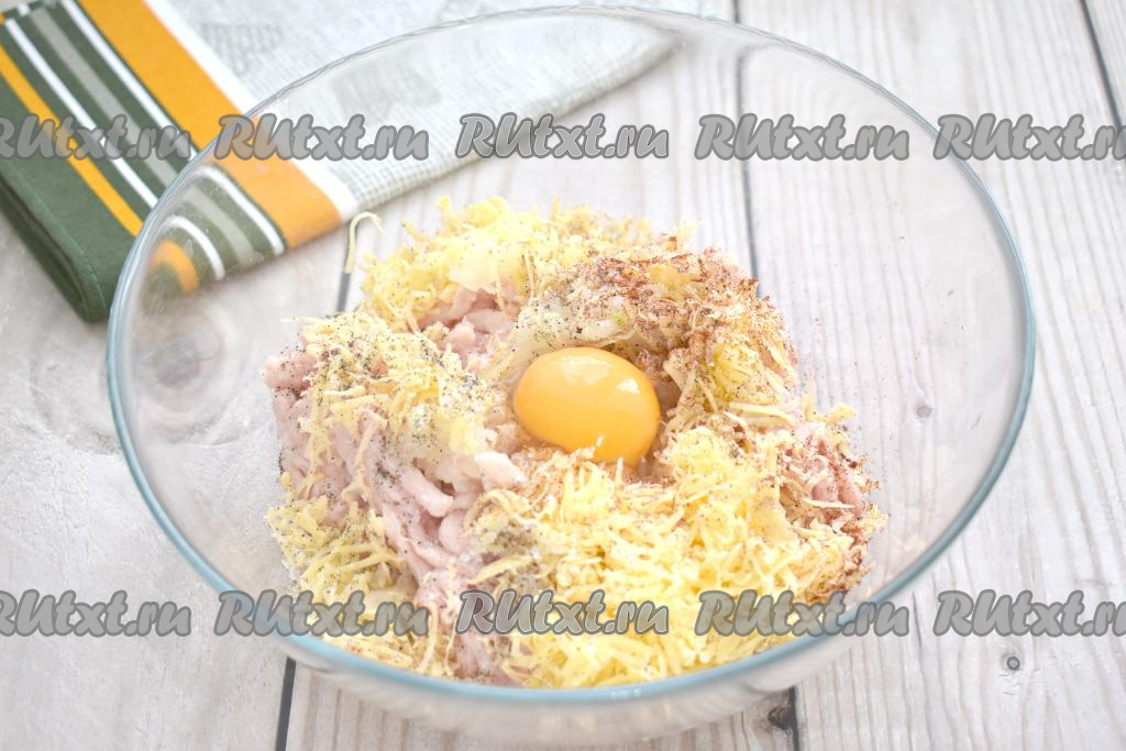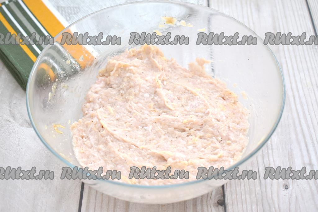 Перемешиваем курино-сырный фарш до однородности.