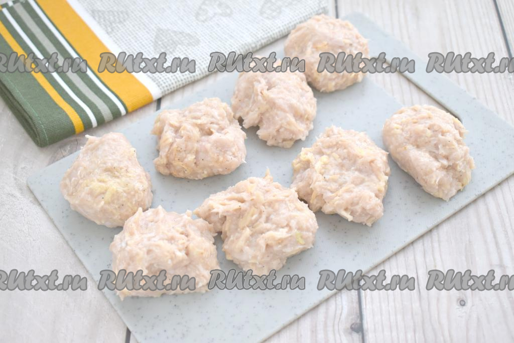 Делим фарш на 8 равных частей (я готовила небольшие котлетки весом 62-64 грамма).