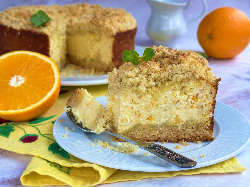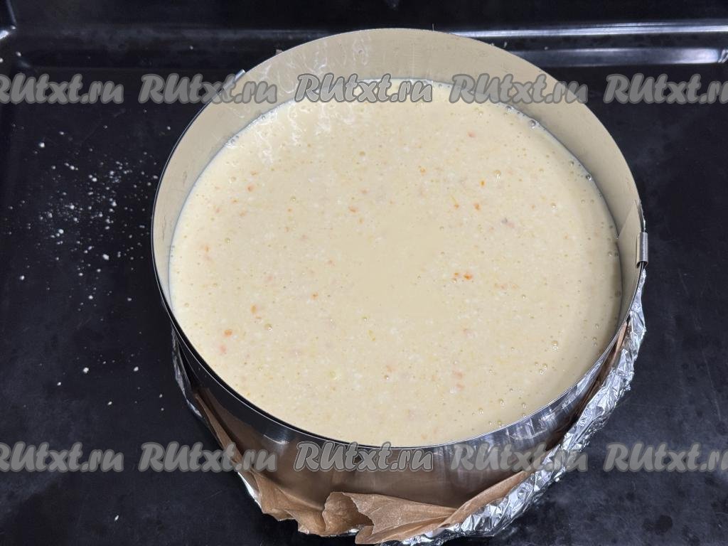 В форму поверх теста-крошки выложить творожно-апельсиновую массу, разровнять.