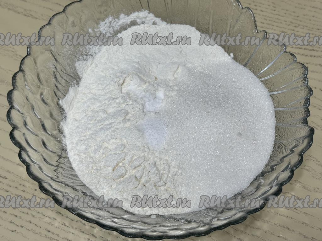 Прежде всего замесим тесто-крошку. Для этого в достаточно глубокую миску нужно просеять муку, всыпать сахар, соду и соль.