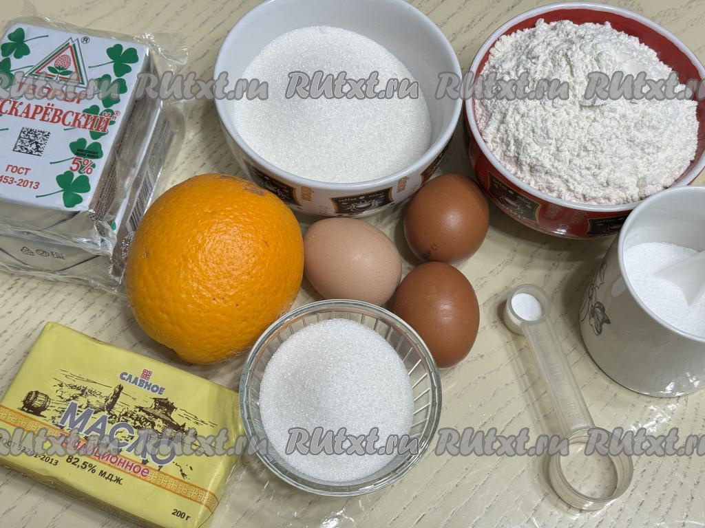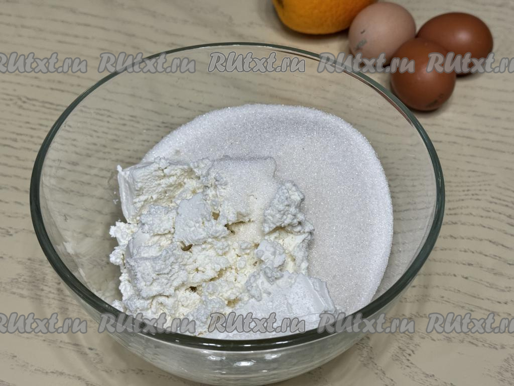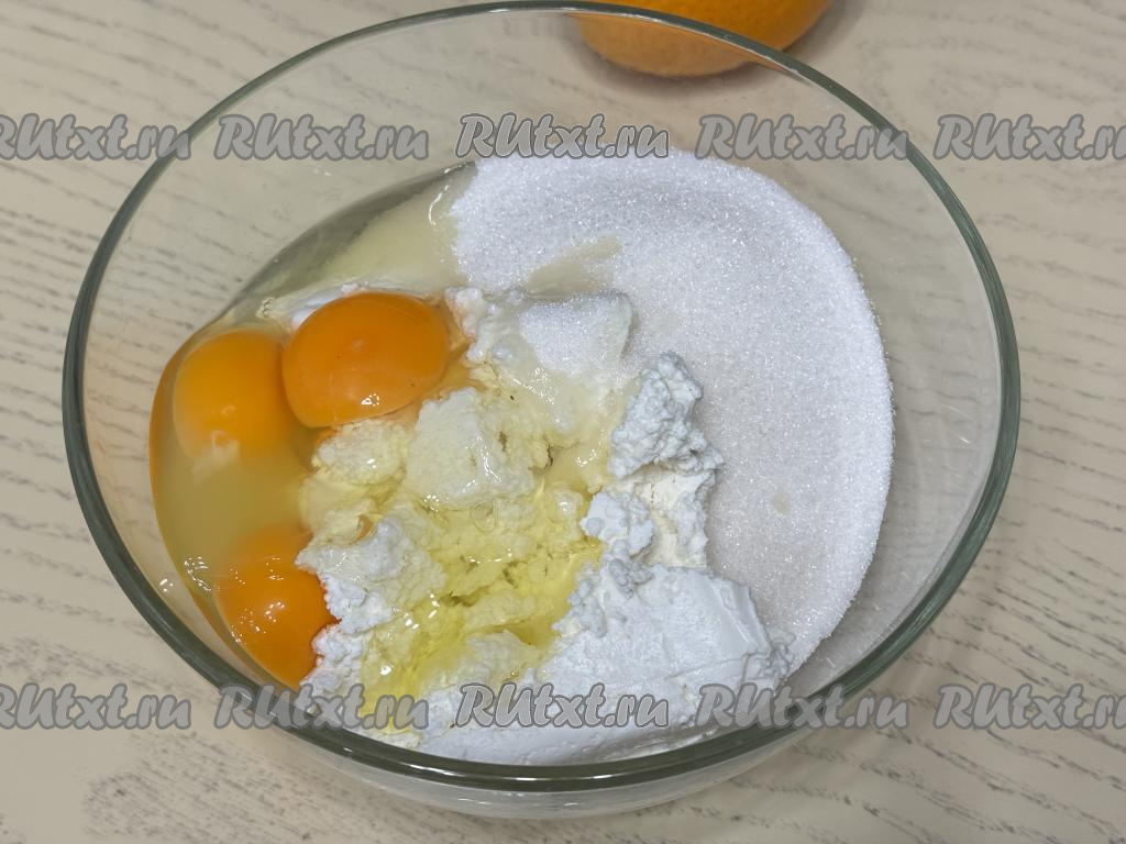 Подготовить продукты. Творог можно взять любой консистенции и жирности (я купила жирностью 5%). Крахмал можно взять как кукурузный, так и картофельный. Апельсин тщательно вымыть.