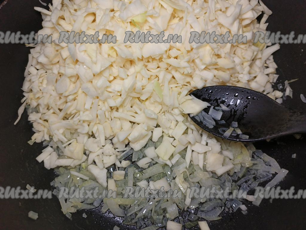 Если капуста недостаточно выделила сок и начинает подгорать, можно добавить в сковороду несколько столовых ложек воды.