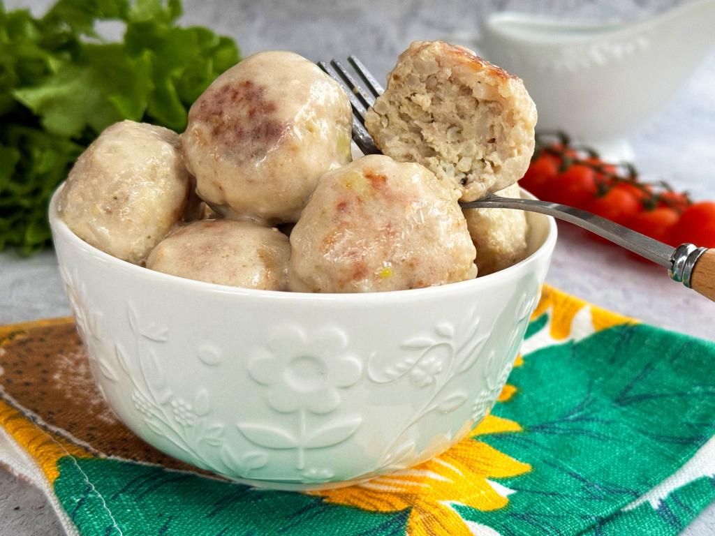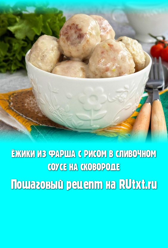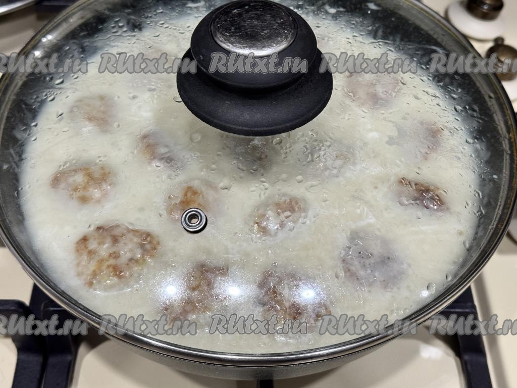 Получившийся сливочный соус влить в сковороду с обжаренными ёжиками из фарша с рисом.