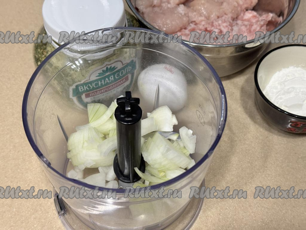 Лук и чеснок, нарезанные на кусочки, превратить в однородную массу в измельчителе (или пропустить через мясорубку).