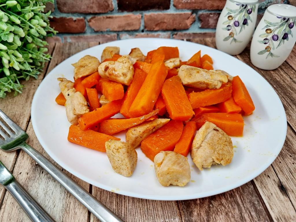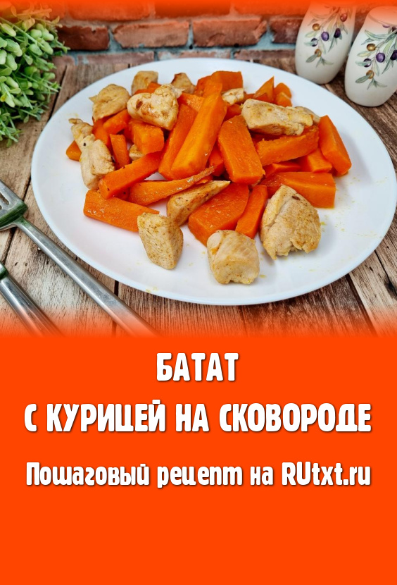 Сладковатый вкус батата делает его приятным дополнением к различным блюдам. В этот раз решила пожарить на сковороде батат с кусочками мяса курицы. Блюдо готовится и просто, и быстро, а к столу его можно подать в качестве полноценного обеда или ужина. Куриное мясо получается мягким, достаточно сочным, кусочки батата - нежными, аппетитными. Батат в этом блюде отлично сочетается с курицей, создавая приятную гармонию вкусов!