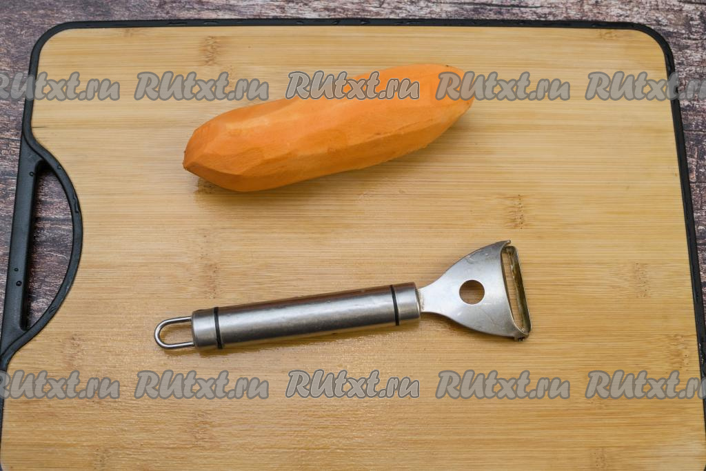 Батат очистить от кожуры, промыть водой. Я для очистки батата пользуюсь обычной овощечисткой.