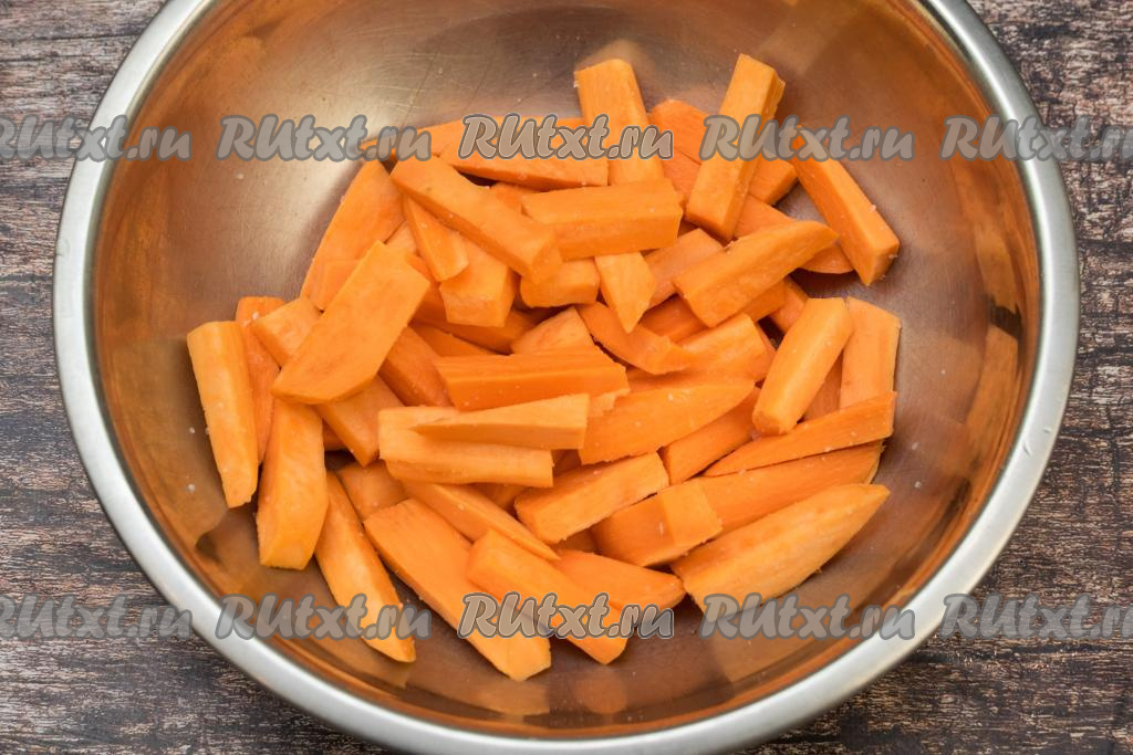 Нарезать батат на примерно одинаковые брусочки.