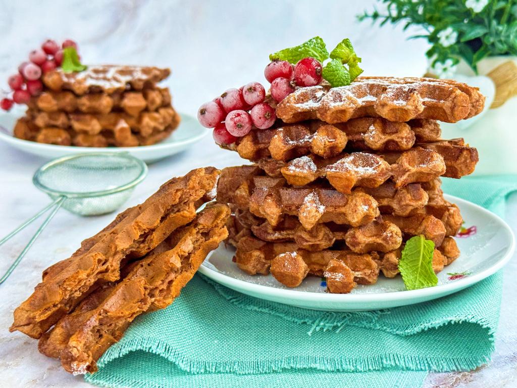 Мягкие, очень вкусные, ароматные творожно-шоколадные вафли подать к чаю.