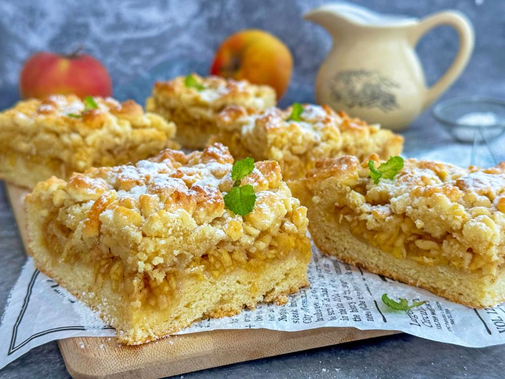 Наивкуснейшую шарлотку из нежнейшего песочного теста с сочной начинкой из яблок подать к чаю, кофе, молоку.