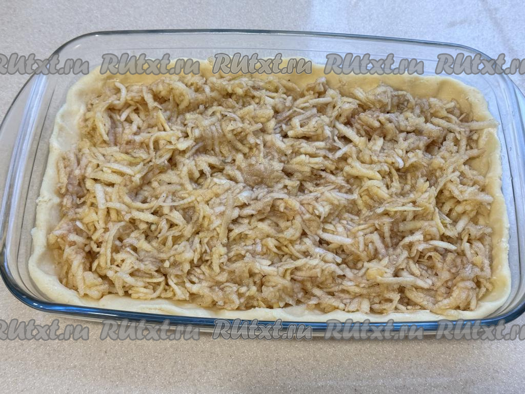 Выложить яблочную начинку в форму поверх теста, разровнять.