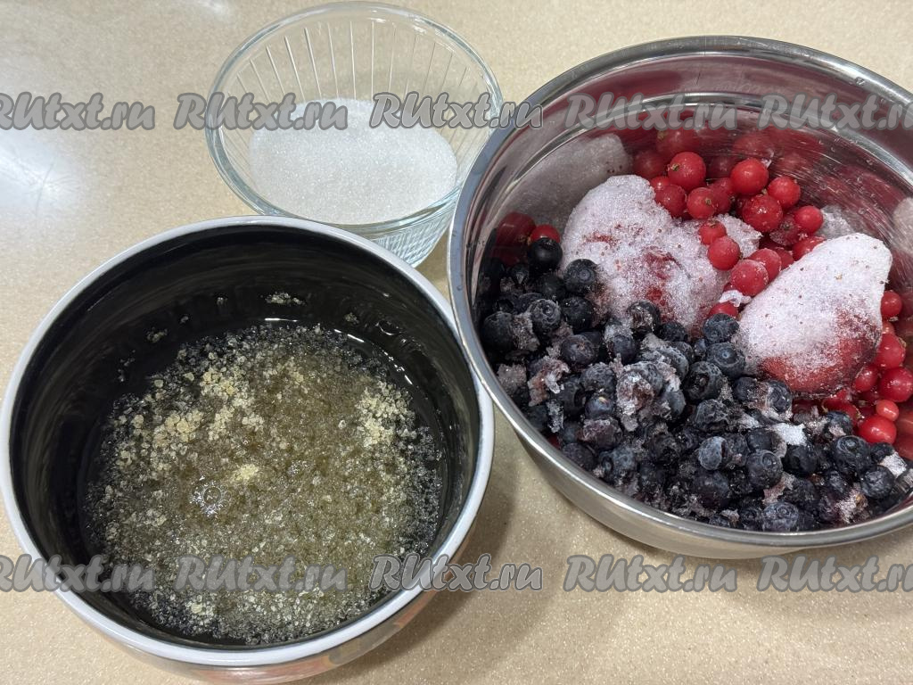 Подготовить продукты. Для этого десерта можно взять замороженные ягоды как одного вида, так и смесь ягод (у меня - замороженные черника, красная смородина и клубника).