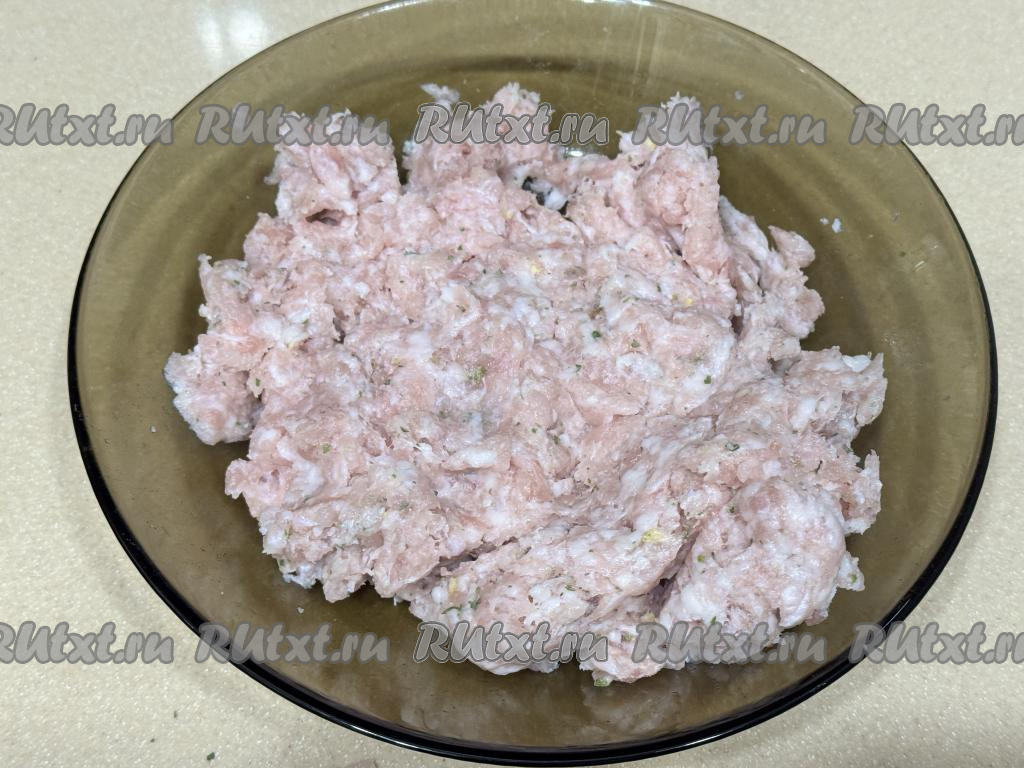Фарш выложить в миску, посолить его, поперчить, тщательно перемешать.