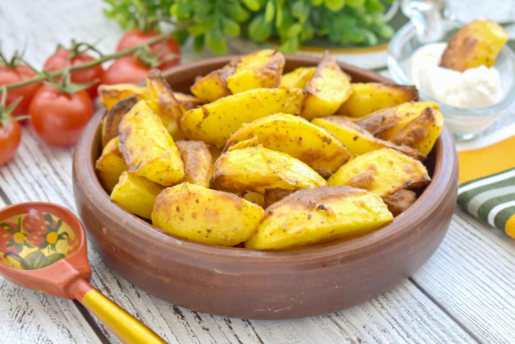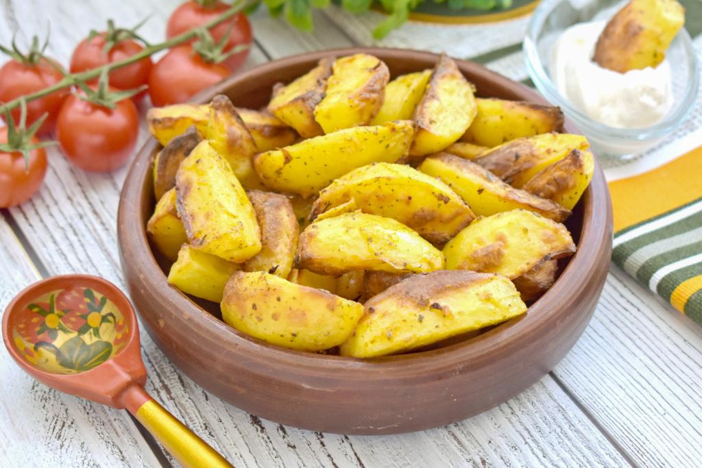 Картофель можно приготовить по-разному. В этот раз предлагаю нарезать картошку на дольки и запечь в сметане в аэрогриле. Рецепт простой, а результат никогда не разочаровывает. Картошка, запечённая в сметане, получается аппетитной, покрытой румяной корочкой снаружи и при этом нежной, мягкой внутри. Это сытное, вкусное, ароматное блюдо можно подать в качестве полноценного гарнира к птице, рыбе, мясу.