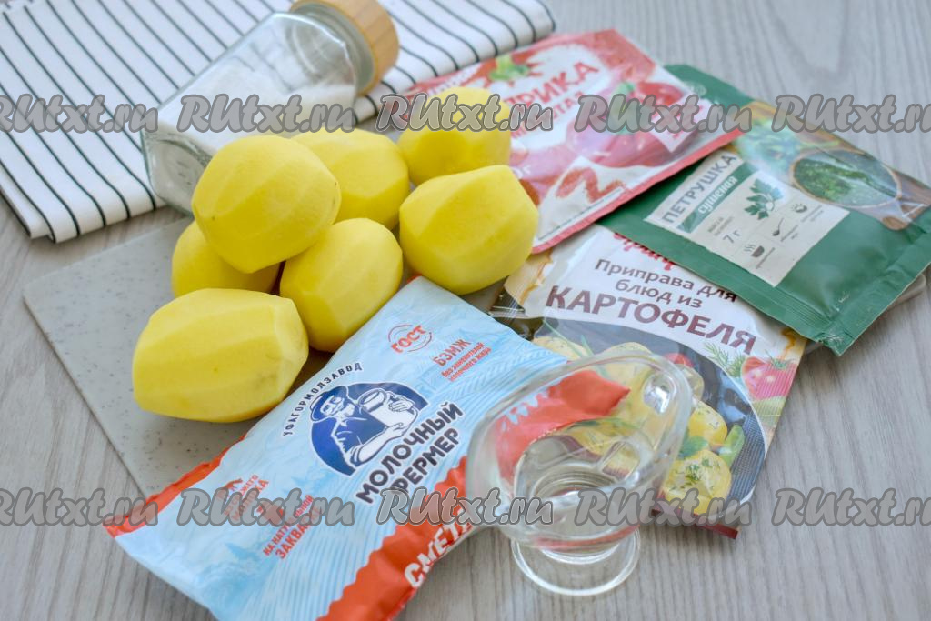 Для приготовления картошки в сметане в аэрогриле потребуется: