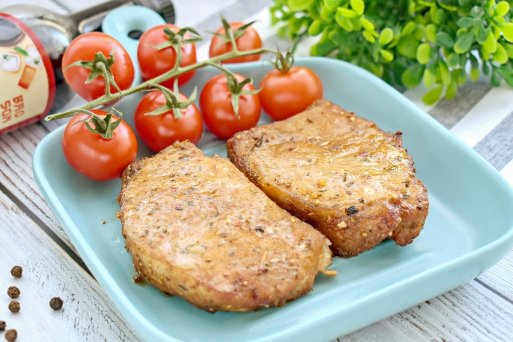 Аэрогриль отлично подходит для запекания мяса. В этот раз решила запечь в аэрогриле стейки из карбоната свинины, предварительно замариновав мясо в соевом соусе. Стейки получились аппетитными, сытными, сочными. К столу это вкусное мясное блюдо можно подать практически с любым гарниром или свежими овощами.