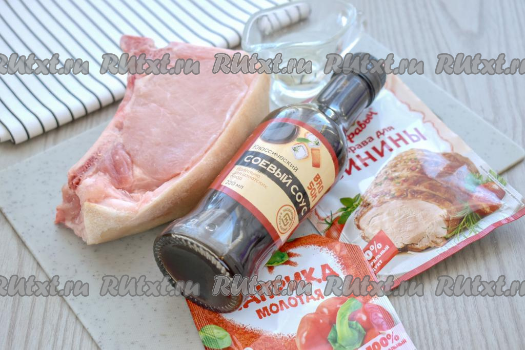 Для этого блюда я взяла свиной карбонат на кости. Я удалила с мяса шкурку и срезала кость. В результате у меня получился кусок свинины весом 300 грамм, моем мясо, обсушиваем.