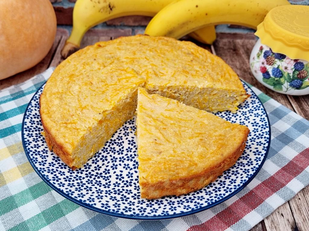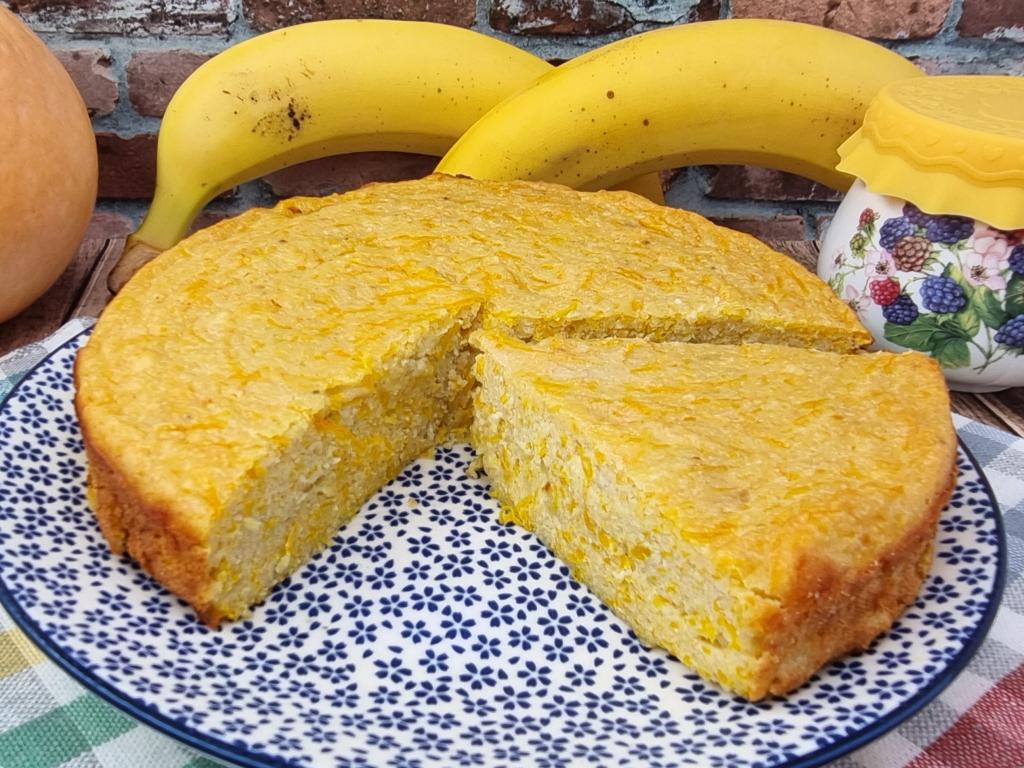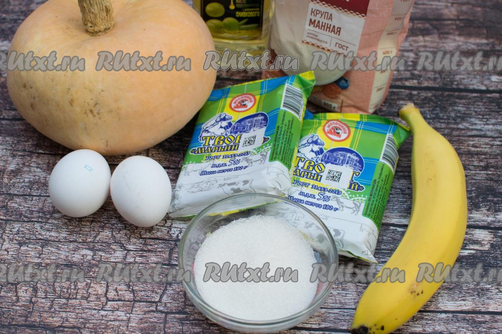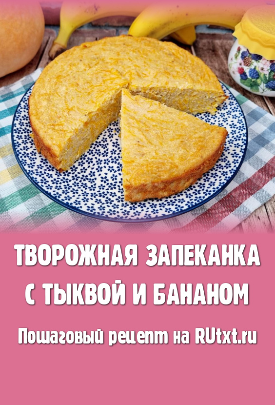 Творожная запеканка, приготовленная с тыквой и бананом, получается нежной, она просто тает во рту, но при этом она хорошо держит форму и отлично режется на части.