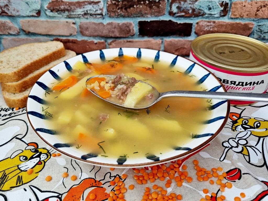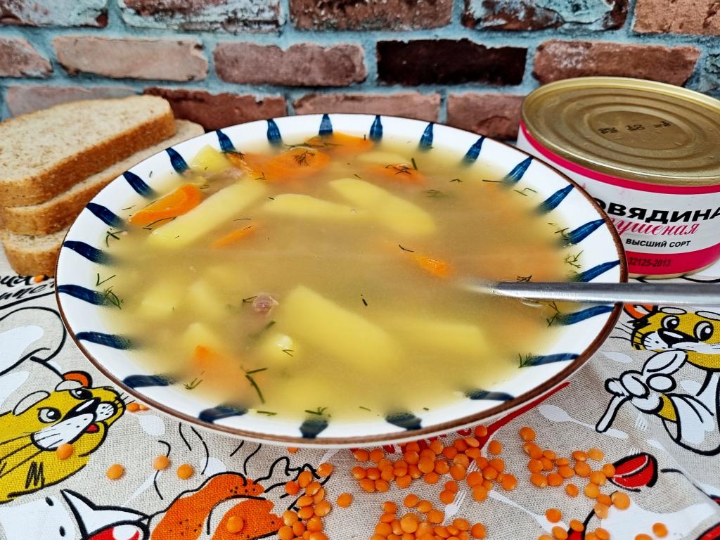 Предлагаю разнообразить повседневное меню и сварить суп с чечевицей и тушёнкой. Это первое блюдо готовится достаточно быстро, ведь не нужно ждать, пока сварится мясной бульон. Суп, благодаря сочетанию тушёнки и чечевицу, получается насыщенным, сытным, вкусным. Главное - взять качественную тушёнку от проверенного производителя и тогда вы сможете порадовать себя и своих близких отменным первым блюдом!