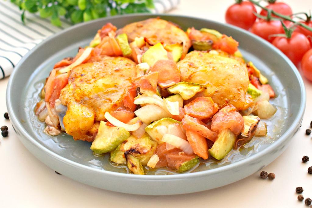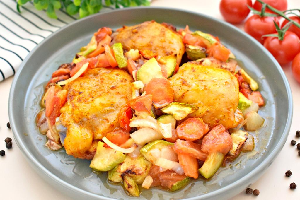 Мне нравятся блюда, когда и мясо, и гарнир готовятся одновременно. Поэтому решила запечь в аэрогриле куриные бёдра вместе с овощами. Для этого блюда можно использовать сезонные овощи или те, что есть в наличии. В этот раз готовила с кабачками, помидорами, морковкой и луком. Блюдо получилось насыщенным, вкусным и сытным. Сочные овощи стали отличным дополнением к мягким, аппетитным куриным бёдрам. Это блюдо можно подать к столу в качестве полноценного обеда или ужина.