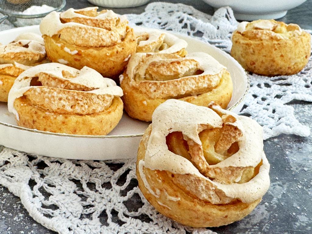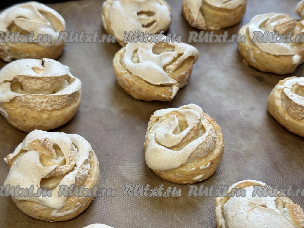 Очень вкусное, нежное творожное печенье "Розочки" с воздушным безе подать к столу.