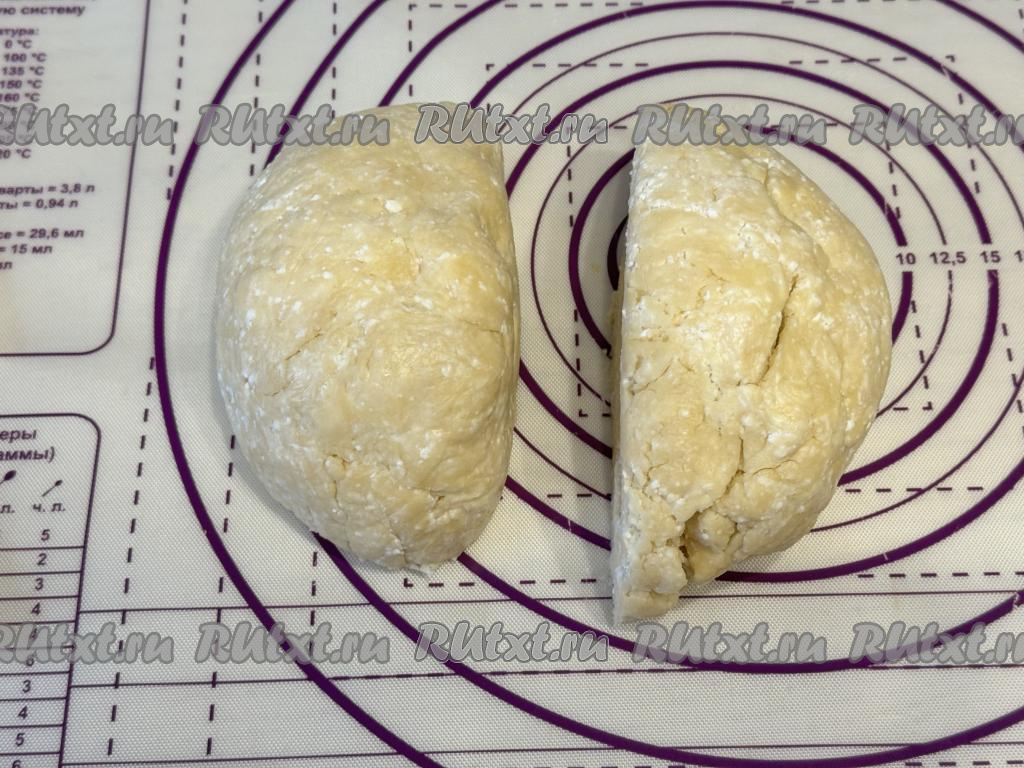 Достать тесто из холодильника, разделить его на 4 равных части.