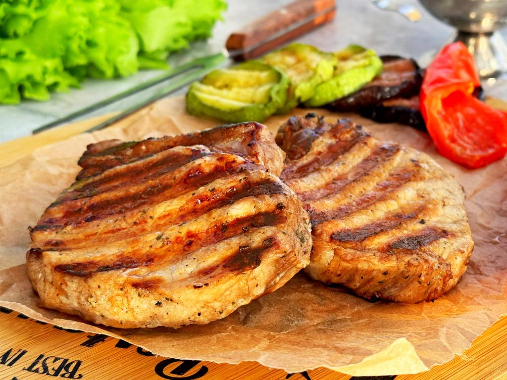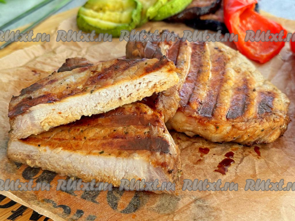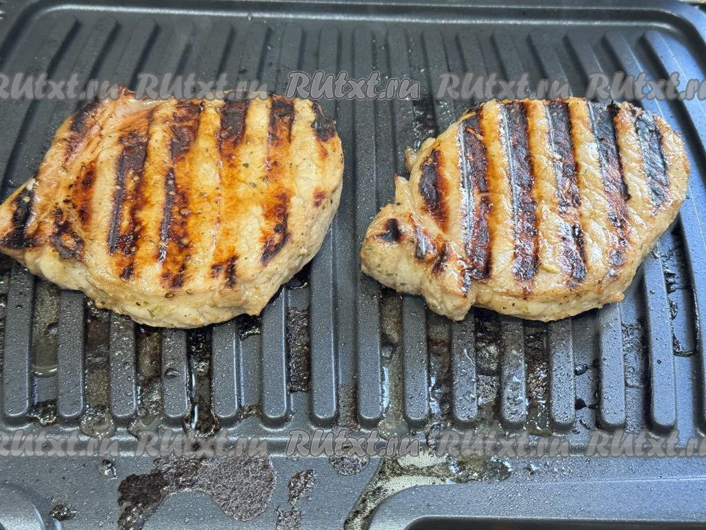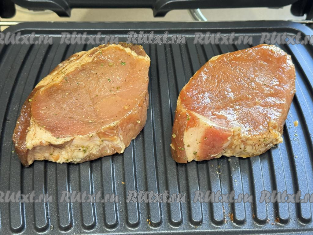 Сочные, аппетитные стейки из свинины, жаренные в электрогриле, лучше всего подавать к столу горячими, тогда они будут особенно вкусными.