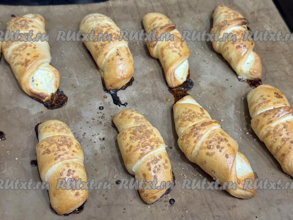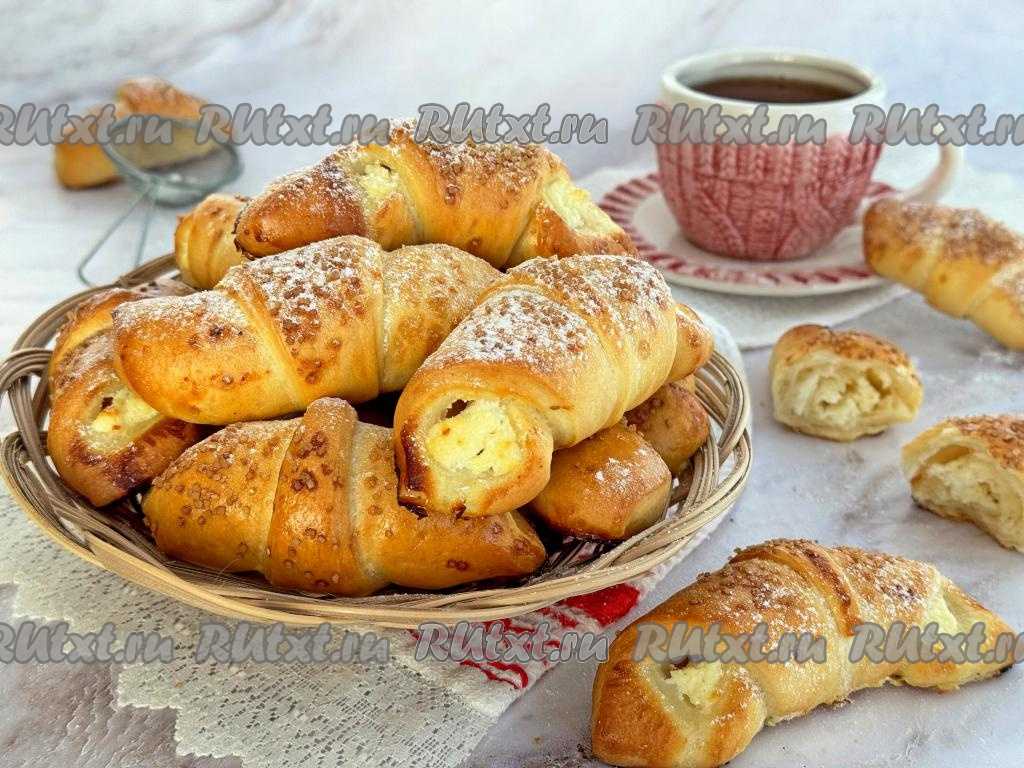 Выпекать рогалики с творогом в разогретой до 180 градусов духовке минут 20 (дрожжевое тесто должно хорошо подрумяниться).