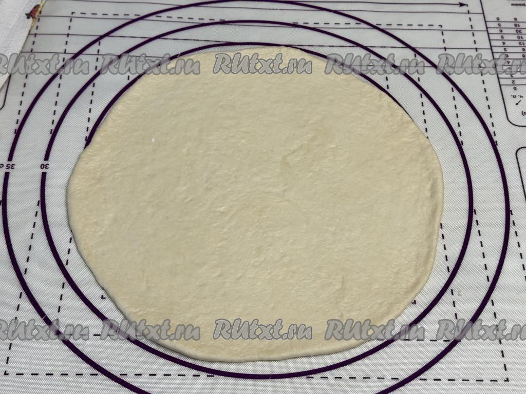 Тесто разделить на 3 равных части. Каждую часть теста на слегка присыпанной мукой поверхности раскатать скалкой в круг толщиной 3 миллиметра.
