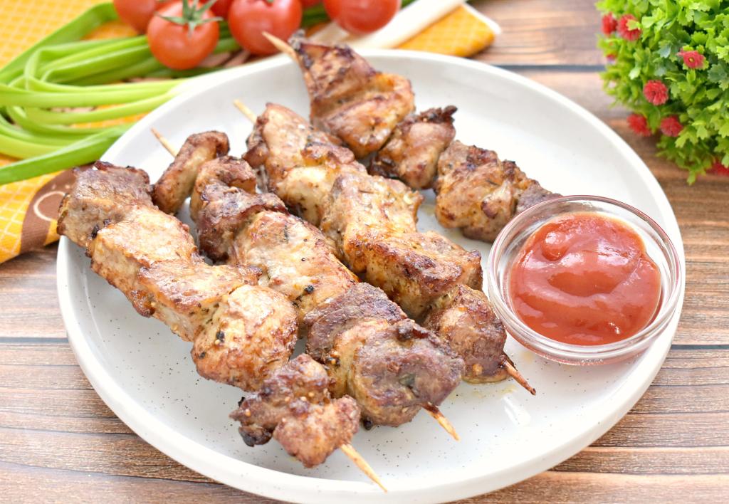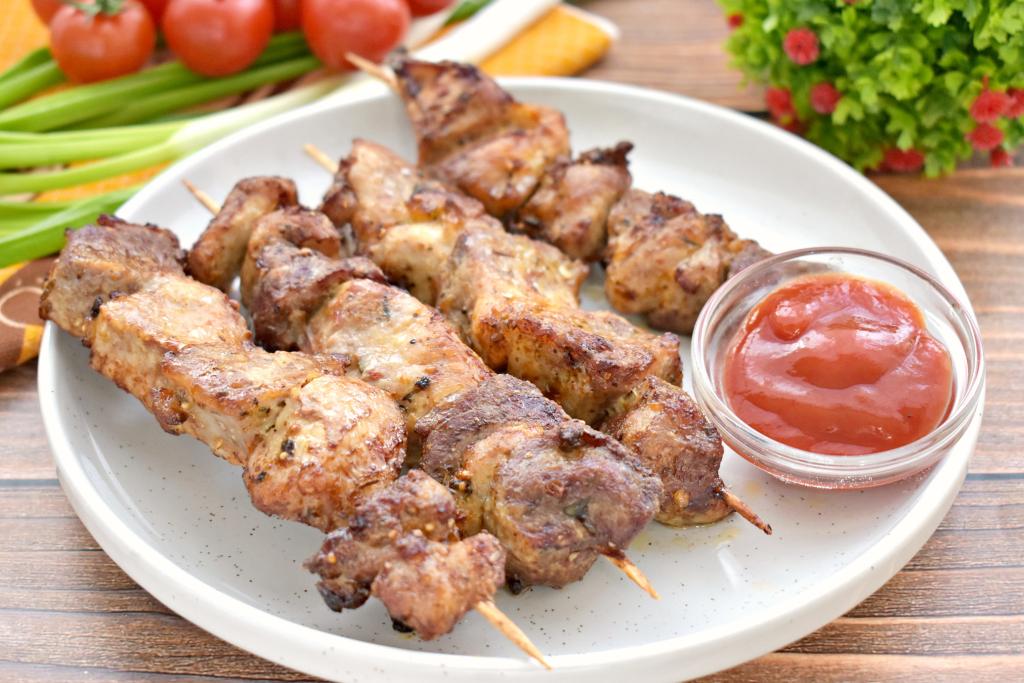 Предлагаю приготовить в домашних условиях шашлык из свинины, используя современный кухонный прибор, - аэрогриль. Свинину я мариновала в луке и майонезе, поэтому она получилась особенно сочной и нежной. Запекается шашлык из свинины в аэрогриле на шпажках. В отличие от шашлыка, жаренного на мангале, он не будет иметь аромат костра, но всё равно будет вкусным, сочным и ароматным. Приготовьте блюдо по этому простому рецепту и вы сможете почувствовать атмосферу пикника, даже находясь дома.