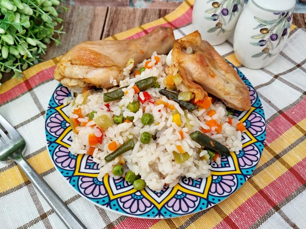 Если вы, как и я, любите рецепты аппетитных, вкусных, сытных блюд, в которых одновременно готовятся и мясо, и гарнир, тогда предлагаю запечь в духовке рис с курицей и мексиканской смесью. Рецепт достаточно простой. Мексиканскую смесь можно купить практически в любом продовольственном магазине в отделе с замороженными овощами и фруктами. Кусочки курицы получаются сочными, нежными, рис - рассыпчатым, хорошо пропаренным, ну а яркая овощная смесь создаёт удачную гармонию вкуса. Приготовьте это вкусное, насыщенное, аппетитное блюдо и у вас будет отличный обед или ужин для вас и ваших близких!