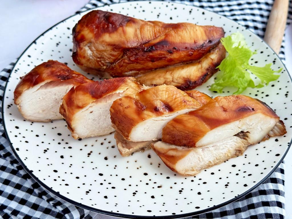Нежную, вкусную, ароматную куриную грудку, запечённую в соевом соусе в аэрогриле, можно подать в горячем виде с любимым гарниром, а можно полностью остудить, нарезать на части и подать в качестве холодной мясной закуски.