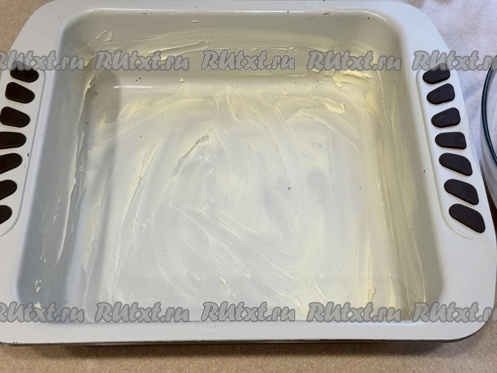 Форму для запекания (я взяла квадратную форму с размером стороны 23 сантиметра) щедро смазать сливочным маслом.