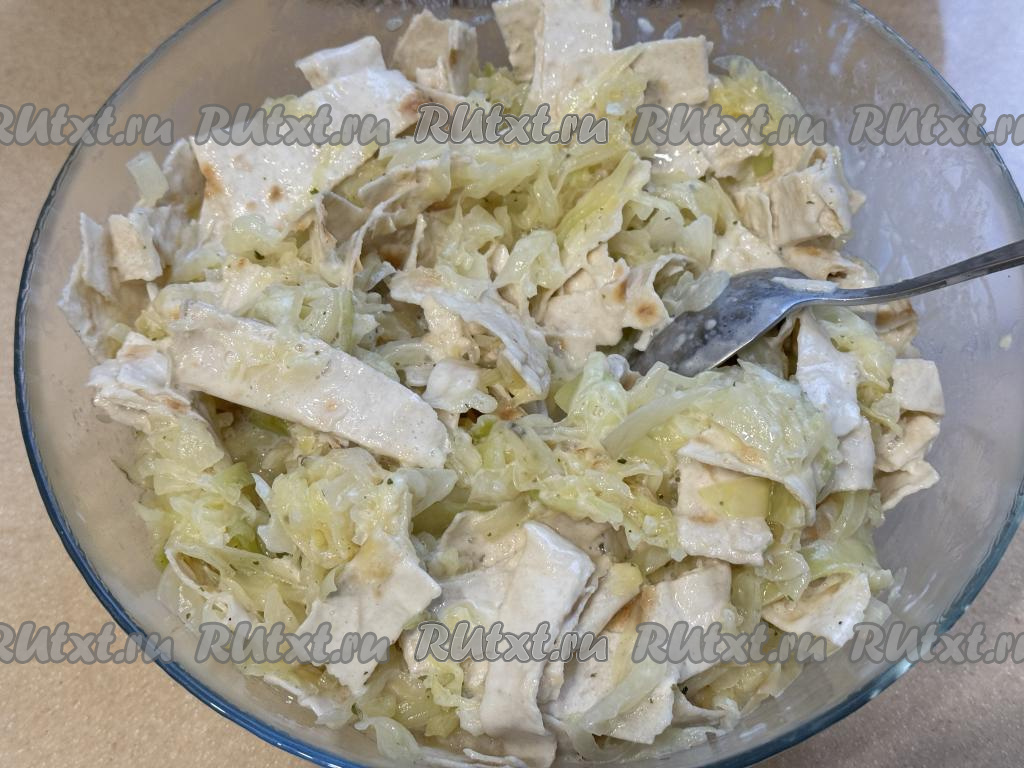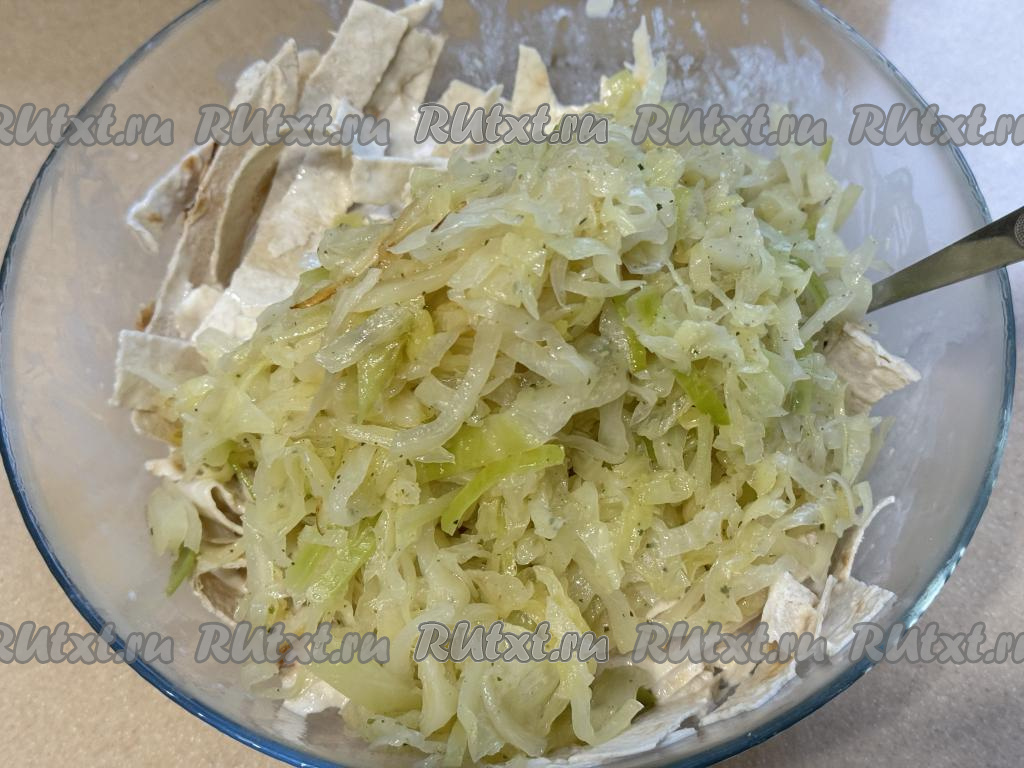 Тщательно перемешать капусту с лавашом.