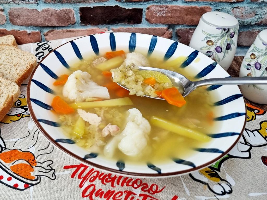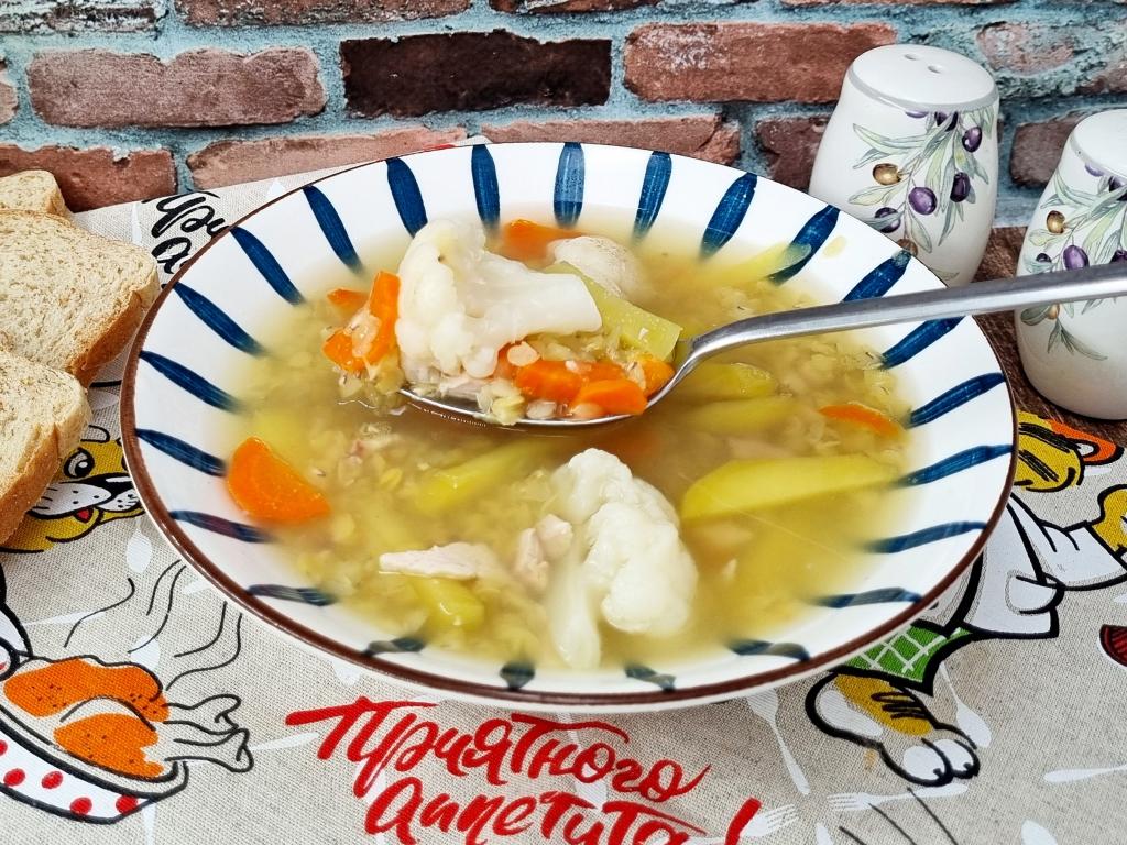 И чечевица, и цветная капуста очень полезны, поэтому решила объединить эти ингредиенты, приготовив вкусный, насыщенный суп. Бульон сварила из кусочков курицы на кости, вы же можете взять индейку, говядину, свинину. Чечевицу лучше всего использовать красную, она и варится быстрее, и идеально подходит для первых блюд. Суп с чечевицей и цветной капустой готовится несложно, без зажарки овощей. В нём ингредиенты отлично сочетаются и дополняют друг друга. Нежная, в меру мягкая цветная капуста делает чечевичный суп более аппетитным и вкусным. Это первое блюдо отлично насыщает, поэтому советую приготовить его к обеду для себя и своих близких!