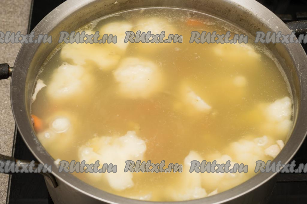 После того как суп с чечевицей, картошкой и морковкой с момента закипания проварится 15 минут, добавить в кастрюлю подготовленную цветную капусту.