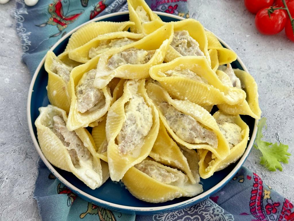 Крупные макароны "Ракушки" отлично подходят для того, чтобы наполнять их мясной начинкой, а затем тушить в различных соусах. В этот раз предлагаю приготовить макароны "Ракушки" с фаршем в сливочном соусе на сковороде. Блюдо получается очень вкусным, сытным, а готовится совершенно просто и быстро.